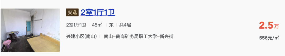 帮我整理一下安居客平台上鹤岗市总价低于3万,面积大于45平,朝南户型的房源信息。