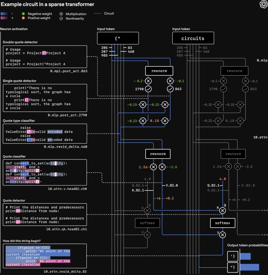 不过,研究人员也强调,这项工作仍处于早期:稀疏模型比前沿模型小得多,并且即使是稀疏模型,计算过程也仍有很多“黑盒”的部分。