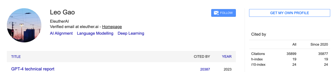 通讯作者为Leo Gao,研究方向是AGI对齐,曾参与过GPT-Neo、GPT-4的研究。论文被引数3.5w+,h-index为19。