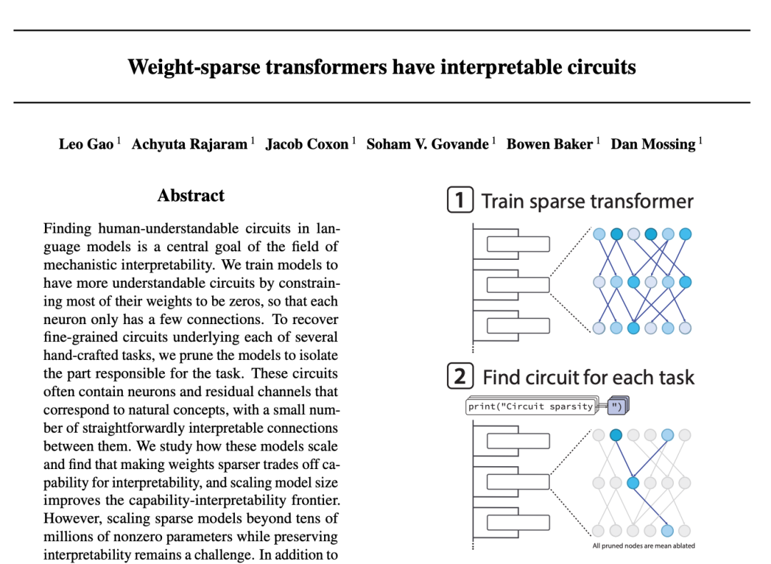 论文公开了OpenAI内部一种训练小模型的新方法,能让模型的内部机制更容易被人类理解,即更具可解释性。