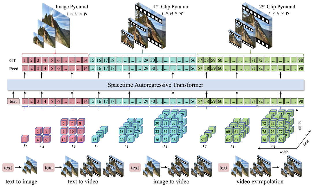 最终,无论是生成图像、生成视频还是图生视频,所有任务都被统一为“预测下一个尺度/下一个片段”的自回归问题,实现了架构的高度统一。