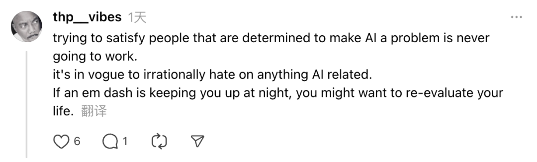 不过也有人对这些“AI标记”持不同看法。有人指出,人们对“AI味”的抵制有些过度,甚至非理性地憎恨任何与AI相关的事物已成为一种趋势。