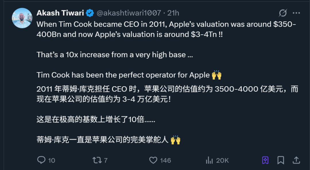 但回顾过去十四年,库克在苹果的贡献,真的可以忽略吗?