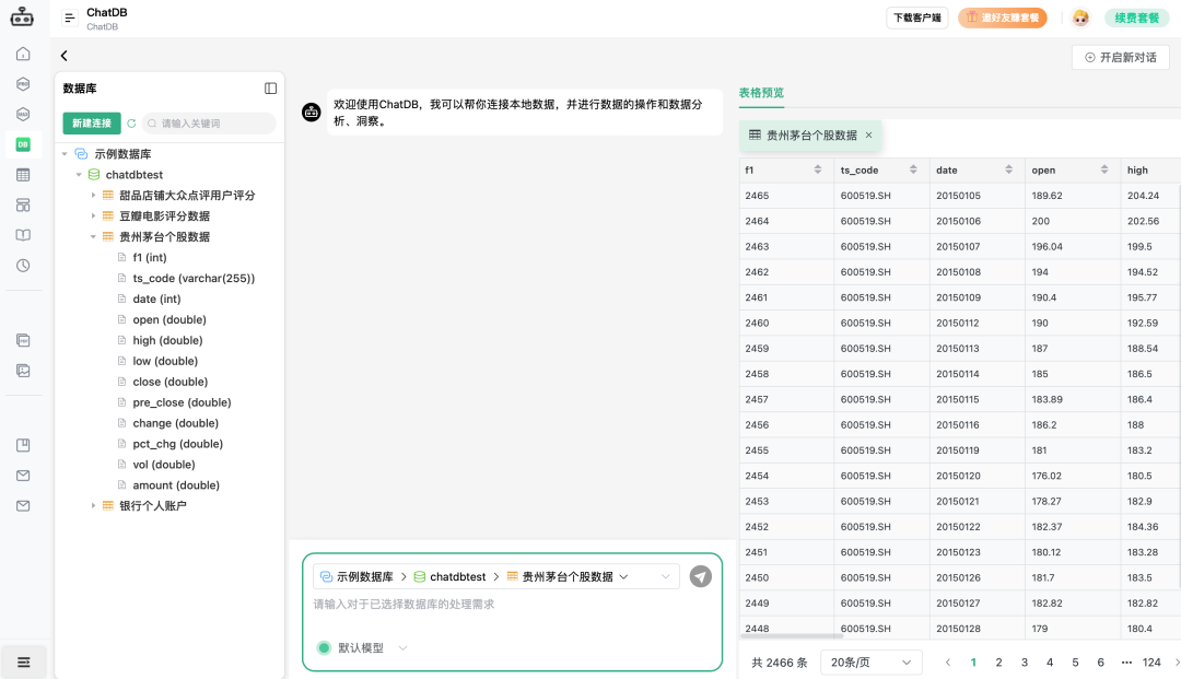企业级数据源对接:通过ChatDB模块,可直接连接并操作企业内部数据库(如MySQL)。用户使用自然语言即可查询和分析数据库内容,将AI数据能力从文件扩展至更核心的企业数据仓库。