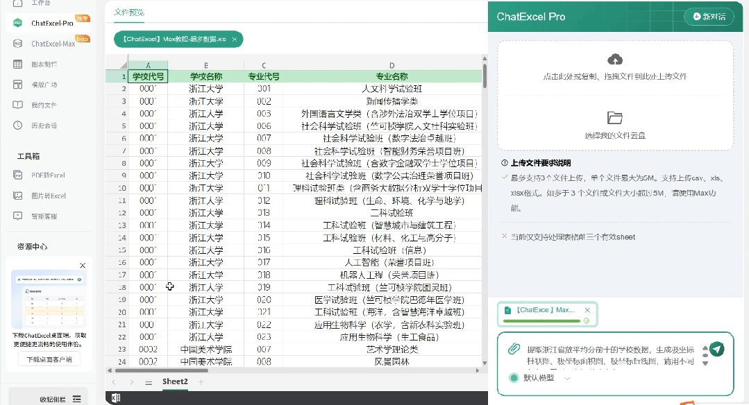 作为国内首款原生的AI DataAgent,ChatExcel专注于通过自然语言对话处理和分析数据,其核心定位为“仅通过聊天AI就可处理Excel”,并已从表格文件延伸至数据库、网页等,致力于为用户提供覆盖数据处理全链路的智能服务。
