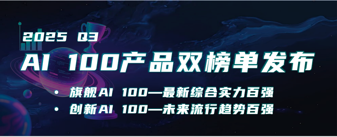 「AI 100」是量子位智库推出的AI产品风向标系列内容,致力于挖掘推广国内的高潜力AI产品,包含「旗舰100」和「创新100」季度双榜单,及1v1访谈栏目。