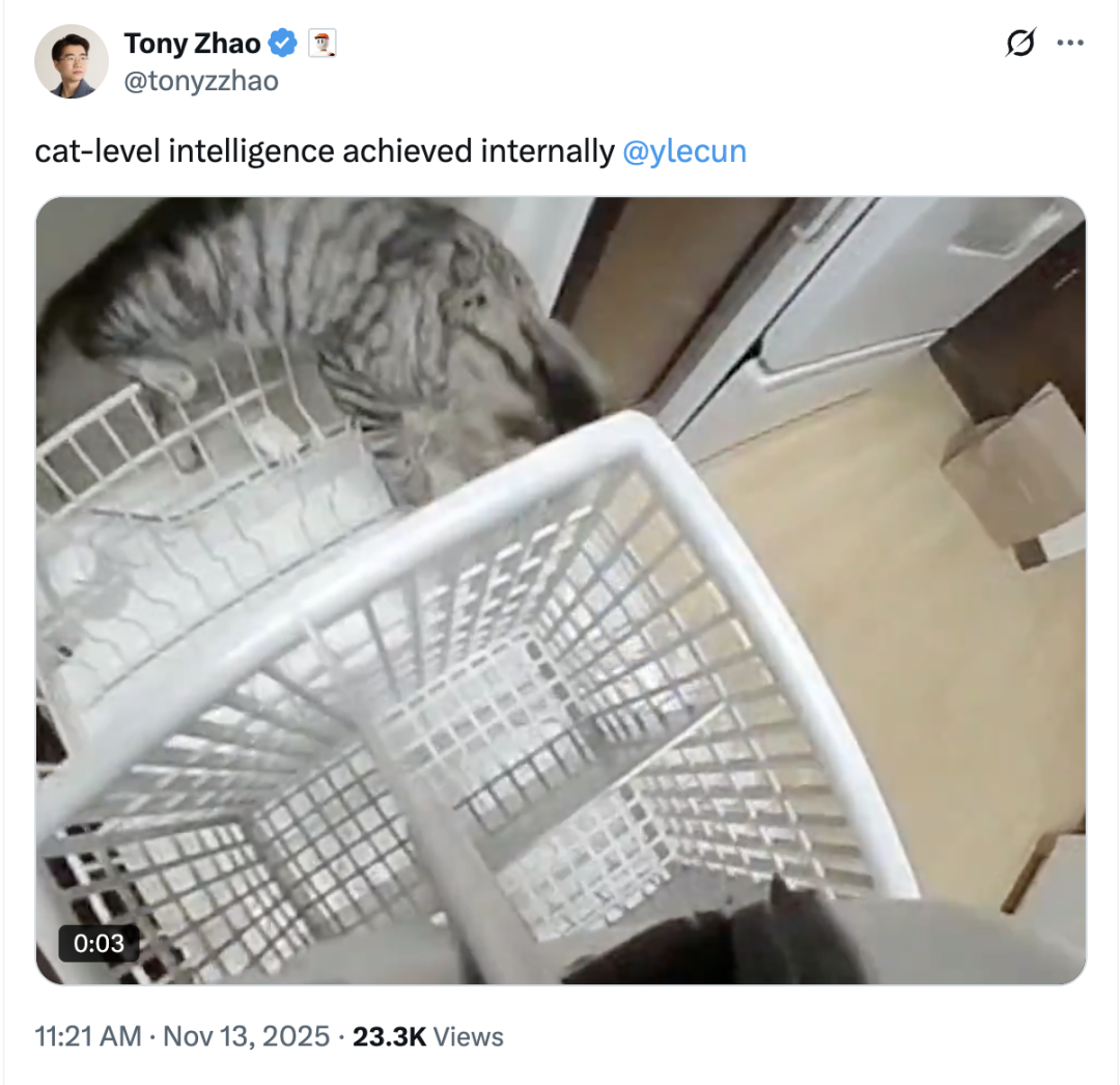 而且据说也已经让机器人具备了猫级智能(LeCun狂喜)。