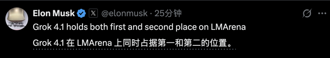 刚刚,马斯克发布Grok 4.1,同时霸榜大模型竞技场的第一和第二。