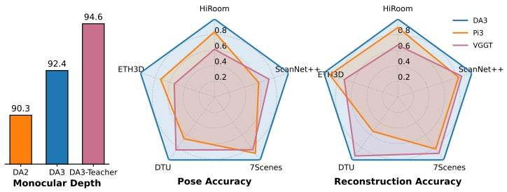 还有就是这些模型往往“术业有专攻”,那DA3的单一极简操作究竟是怎样的呢?