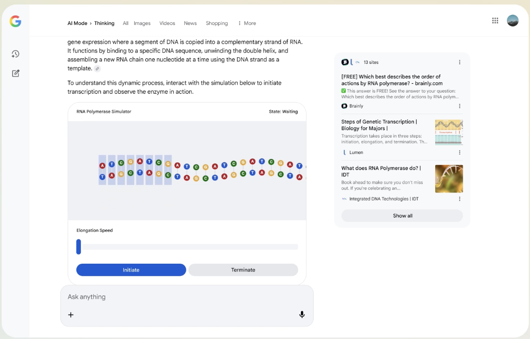 在搜索场景里,Gemini 3也不是直接扔给你一堆链接,而是把即时查询的信息组织成你真正能用的东西,生成可交互式的内容。