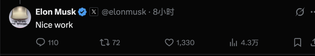 这下奥特曼和马斯克也不得不佩服了,前后脚出来点赞祝贺。