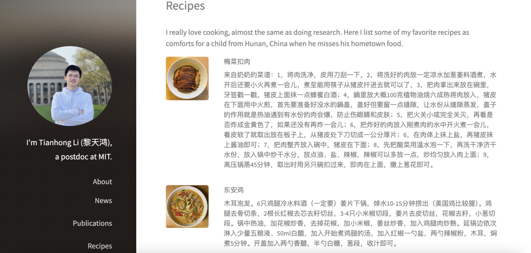 也可以说这是一位酷爱湖南菜的学者,把菜谱都展示在了自己的主页上。