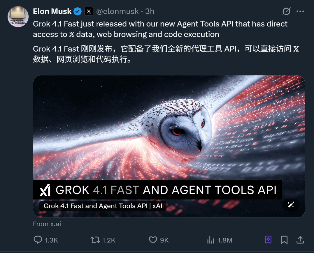 另外,就在刚刚,马斯克还发布了快速推理版Grok 4.1 Fast。