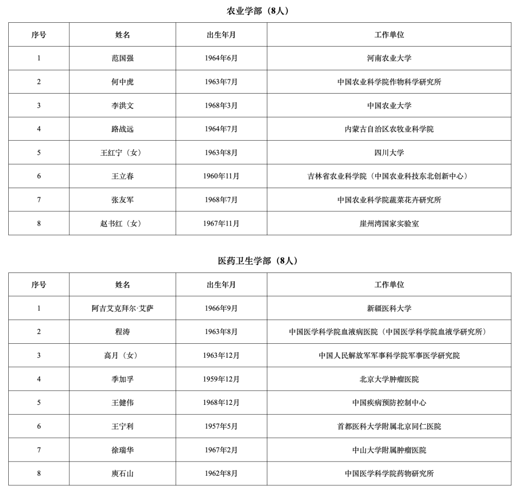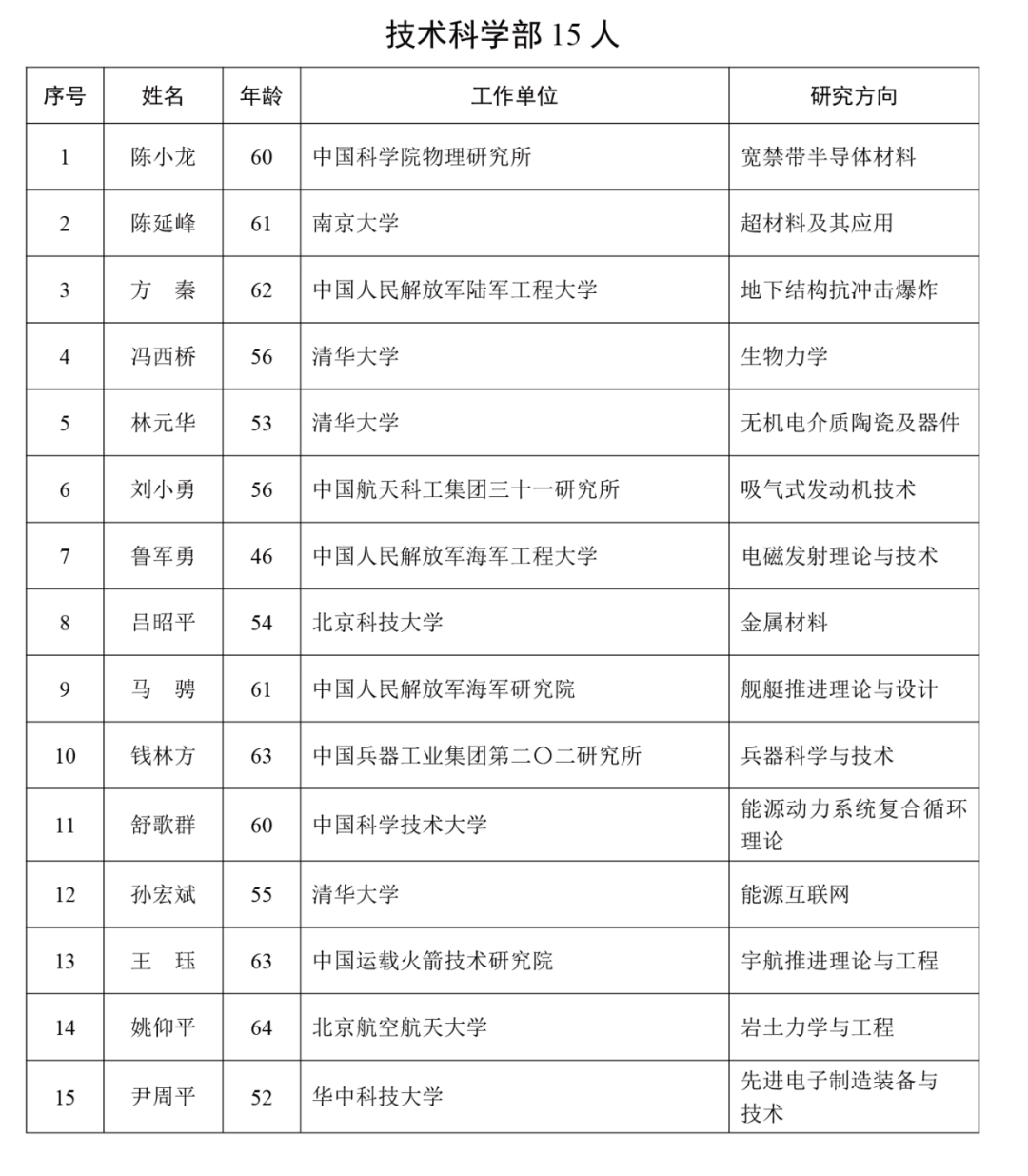 今年共有144人当选——中国科学院院士73人、中国工程院院士71人。