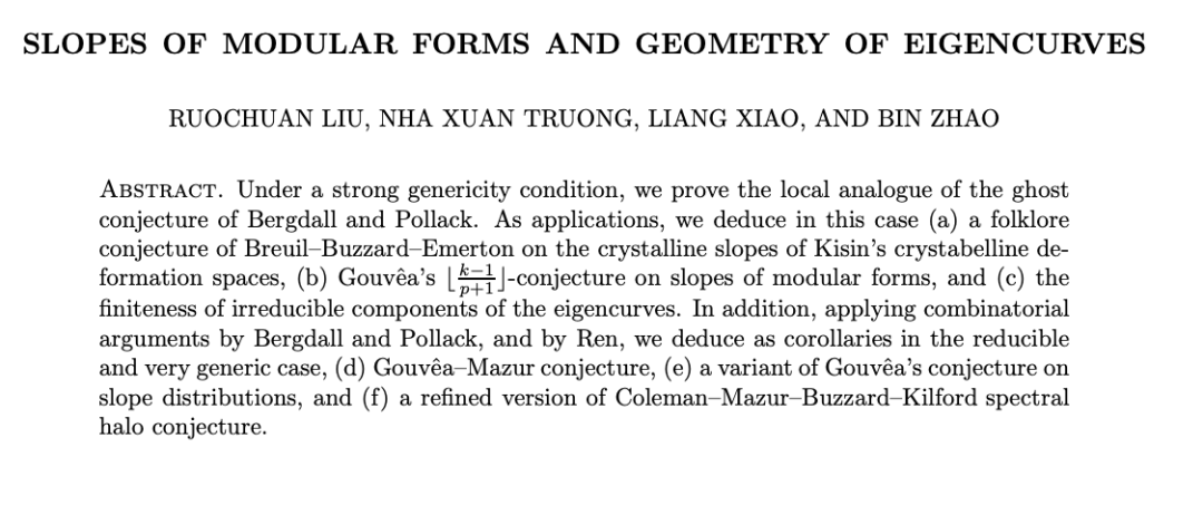 他本人的最新研究论文中,就有另一位“黄金一代”、现任北京大学北京国际数学研究中心教授肖梁的身影。