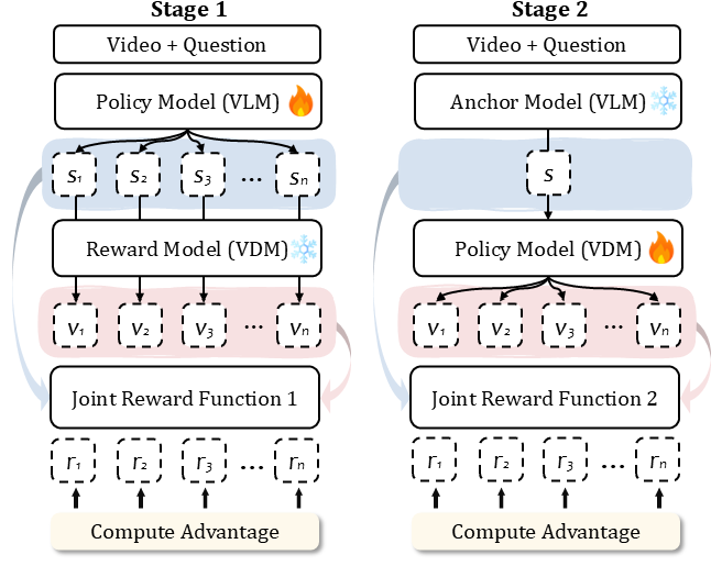 Joint-GRPO通过一个两阶段的强化学习流程,像一个「总导演」一样,对两个模型进行联合调教。