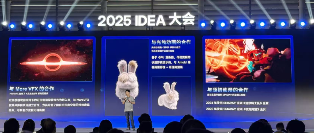 “在电影工业中,一个镜头通常包含几百个G的数据。”王嘉平在演示时介绍,电影工业的渲染和游戏完全不同。游戏要求毫秒级响应,而电影渲染一帧画面可能需要几小时甚至一天。