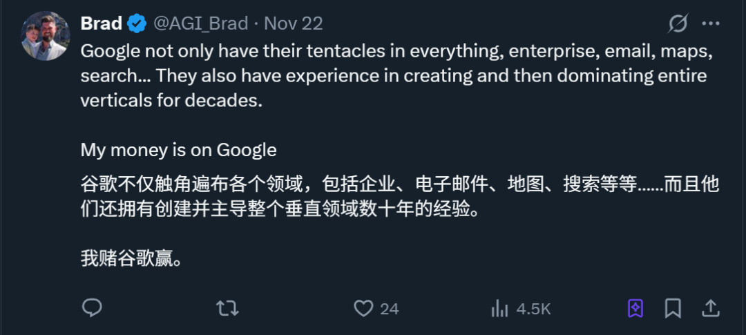 这意味着它可以快速将自己的AI融入到一些核心服务中(如Search、YouTube、Android等),直接触达海量用户,这是任何初创公司都无法企及的、近乎无限的分发优势。
