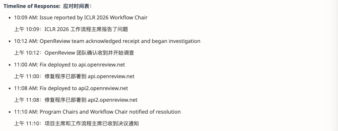 OpenReview在刚刚公布的漏洞报告中梳理了事件的时间线: