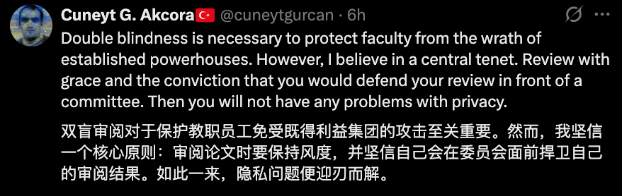 也有不少人认为,或许是时候好好审视一下现行双盲评审制度本身的问题了。