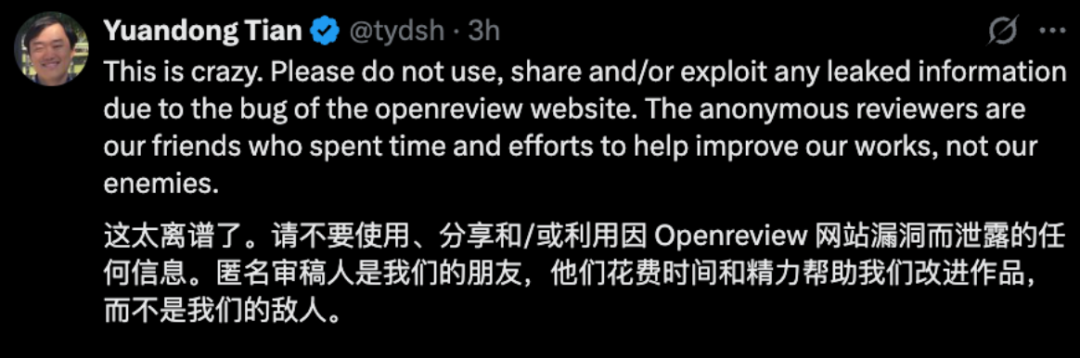 可以看到无论是ICLR,还是OpenReview,都在反复强调不要利用Bug去扒审稿背后本该被隐匿的信息。