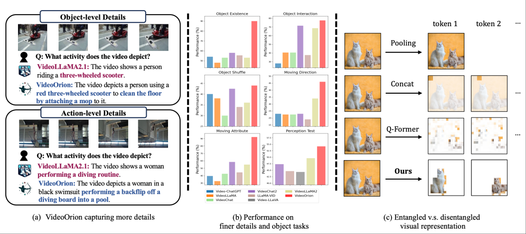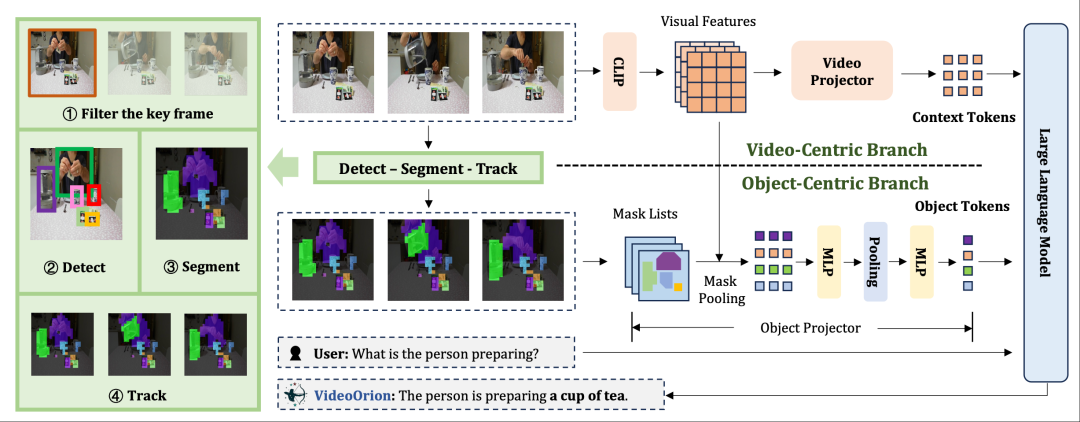 VideoOrion把对象及其跨帧演化当作一级语义单位,使LLM在推理时可以沿对象维度整合细节,既提升细粒度问答,也为指代等需要“锁定实例”的任务提供天然接口。
