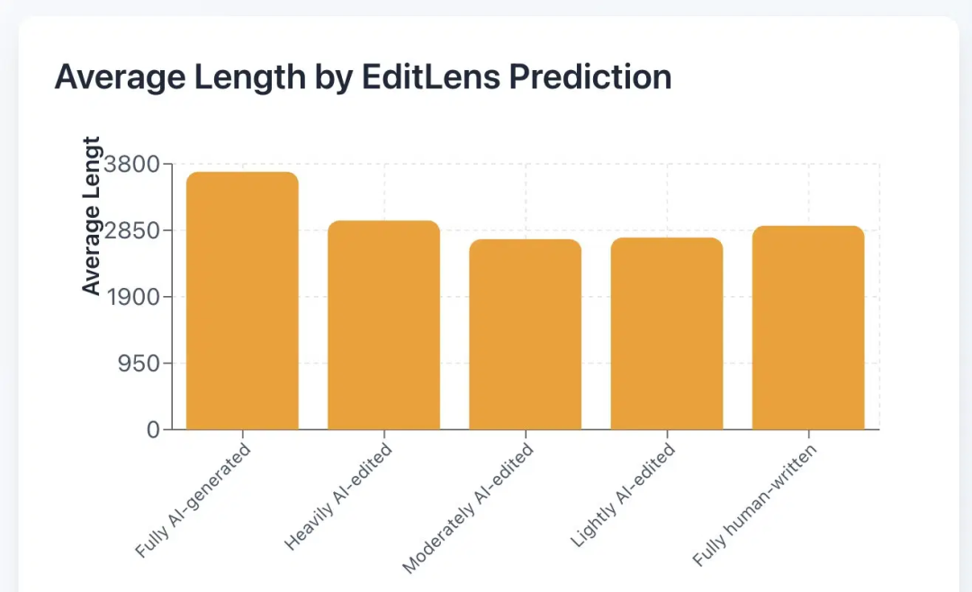 在一个已知完全由人类撰写的对照语料上,EditLens把纯人类写作内容错判成AI润色过的内容的误报率,差不多是1/1000;错判成中等程度AI编辑/辅助内容的误报率是1/50000;错判成AI重度参与的错误率是1/100000。