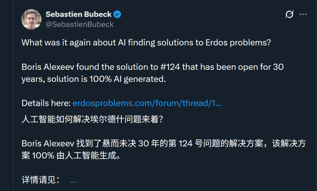 微软前AI副总裁、目前在OpenAI研究AGI的Sebastien Bubeck激动分享了这一消息,并表示: