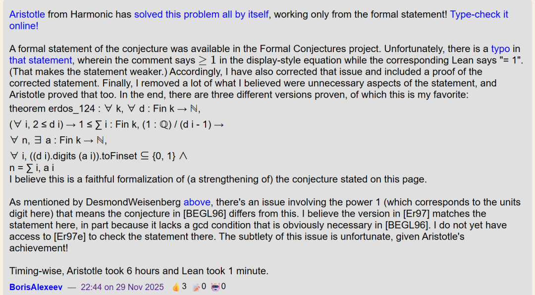 总结起来就是,Harmonic证明了问题#124的简易版本,而困难版本仍悬而未决。
