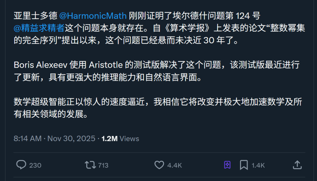 来自Harmonic的数学AI模型独立证明了Erdős问题#124,而这个问题已经被数学家无奈搁置了近30年。