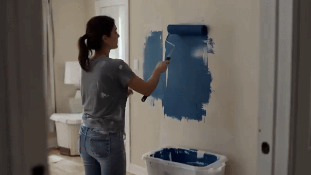 下面这个刷墙视频也能看到很多细节,已经刷过的地方颜料干了,颜色会稍微浅一点: