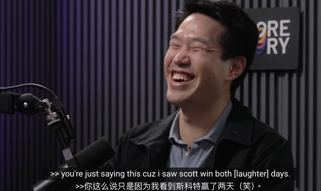 Q:这实际上引出了我接下来本来就想问的问题。但在此之前,我知道你很有竞争心,你也跟我说过一句我记得很清楚的话“我热爱竞争,但我极度讨厌输”,所以如果我们知道Gemini 3会在周四发布,你会不会在凌晨12点就把那道题丢给它?还是没有那么夸张?