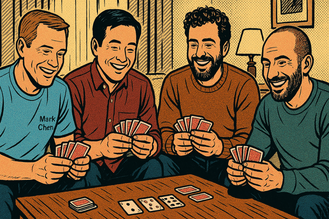 Mark Chen、Scott Gray(OpenAI专门负责GPU内核优化的神秘狠人)等经常三五围坐,打扑克牌。其本质被解释为是概率与期望值的博弈。