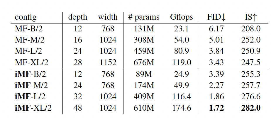 iMF-XL/2在1-NFE下的FID达到了1.72,将单步生成模型的性能推到了一个新的高度。