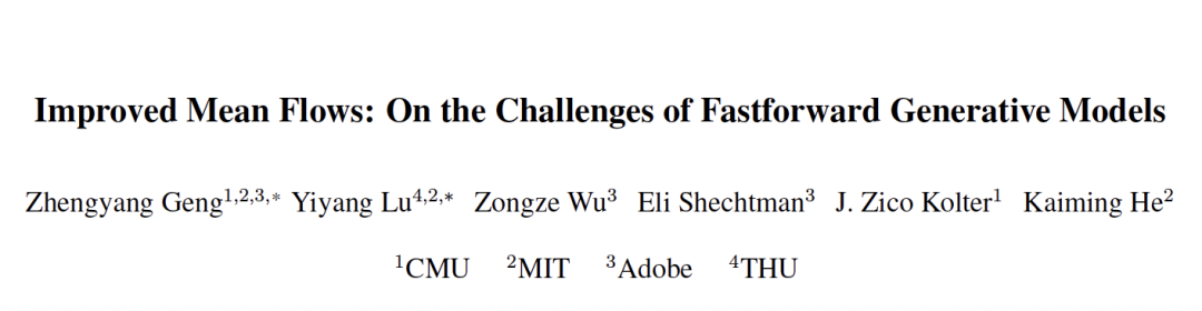 MeanFlow一作耿正阳依旧,值得注意的是共同一作的Yiyang Lu目前还是大二学生——来自清华姚班,而何恺明也在最后署了名。