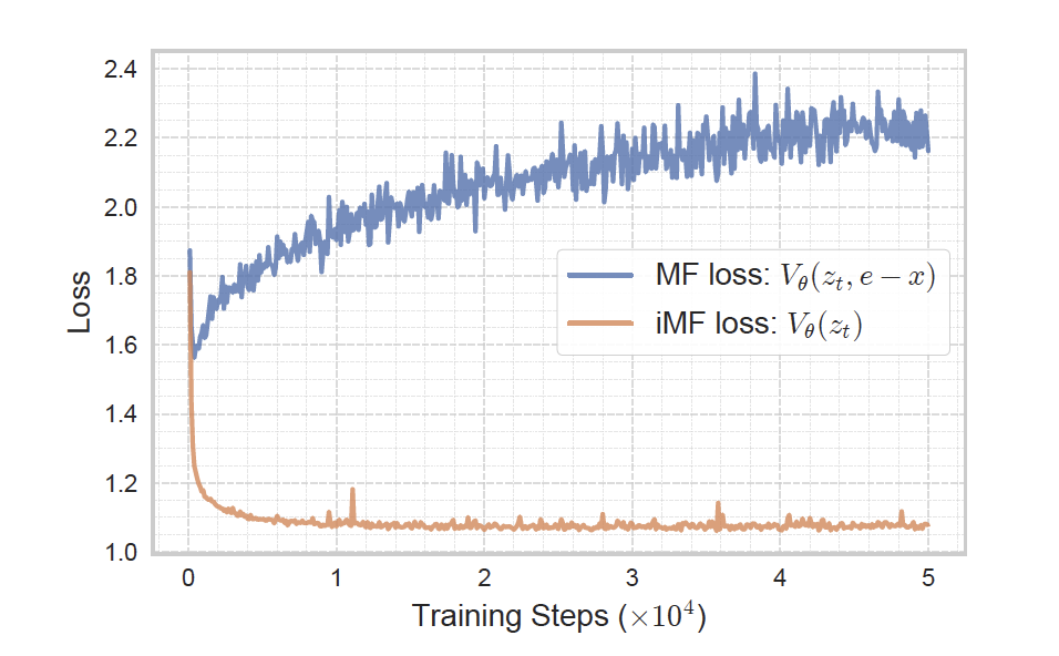 基于此,iMF从瞬时速度的角度去构建损失,使整个训练就变得稳定。