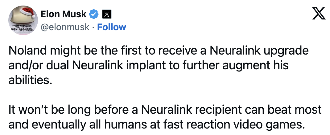 [2]https://www.teslarati.com/neuralink-first-patient-could-receive-an-upgrade-elon-musk/
