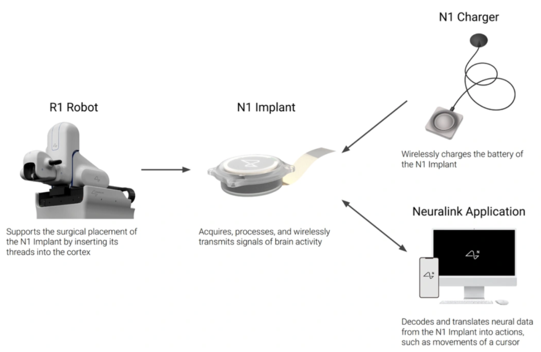 2024年1月,Neuralink首次将脑机接口芯片N1成功植入一位高位瘫痪患者体内。