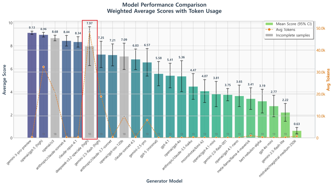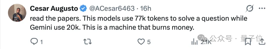 比如,同样解决一个问题,Gemini只用了2万个token,而Speciale需要花费7.7万个。