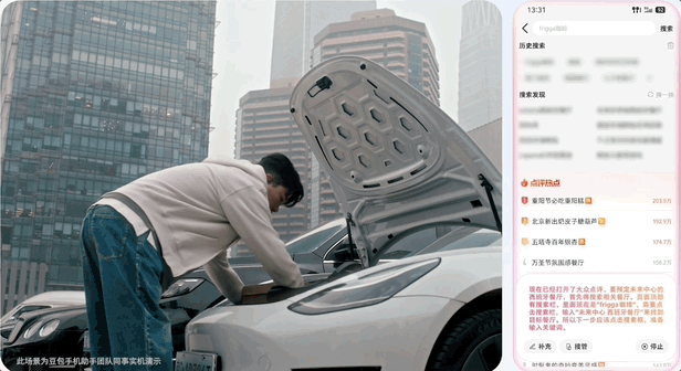 在室外双手被占用、没法拿手机时,佩戴豆包耳机也能随时让这个贴身助手处理任务。