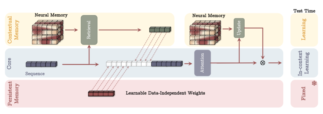 其中Titans可以理解为具体的工具,而MIRAS则是理论框架。两者共同推进了测试时记忆的概念: