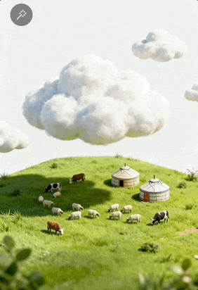 整体场景以木色、雾白与森林绿为主色调,辅以细腻的光影纹理,打造清新又富空间感的氛围。画面既现代又充满自然诗意,宛如北欧传说中温暖而安宁的小镇。