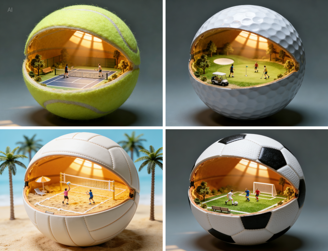 比如根据一张篮球创意图,分别生成足球、排球、高尔夫、网球对应的创意图: