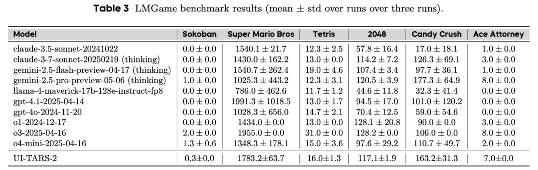 他们从poki.com挑选14款游戏进行测试,通过标准化评分,UI-TARS-1.5在与OpenAI CUA、Claude 3.7的对决中胜出。