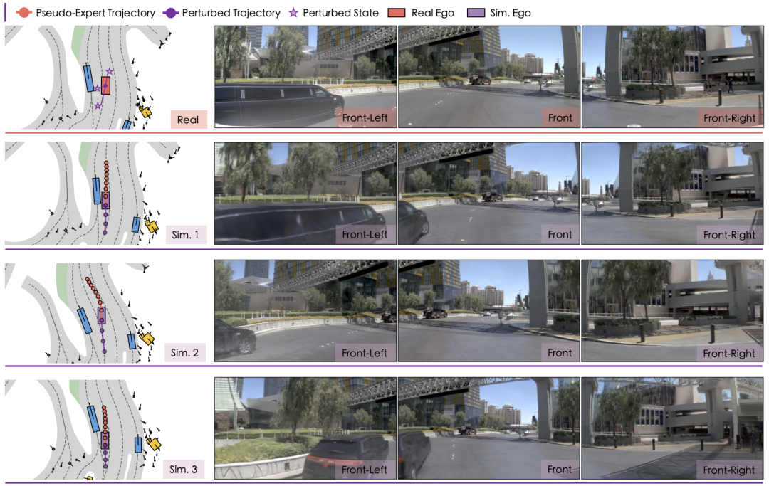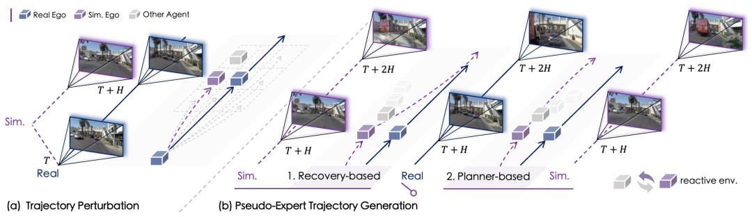 这些操作会让自车进入现实中难以遇见的危险情形,如偏离车道、逼近障碍物或激进交互,从而系统性扩展策略的可见状态空间,提供人驾数据中无法安全采集的数据。