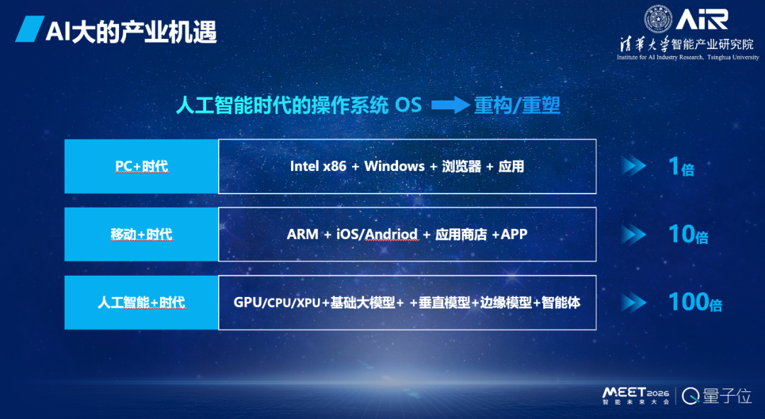 所以如果看一下产业机遇的话,我把基础大模型看作是我们人工智能时代的一个操作系统,它会彻底重写、重构和重塑我们产业的形态。