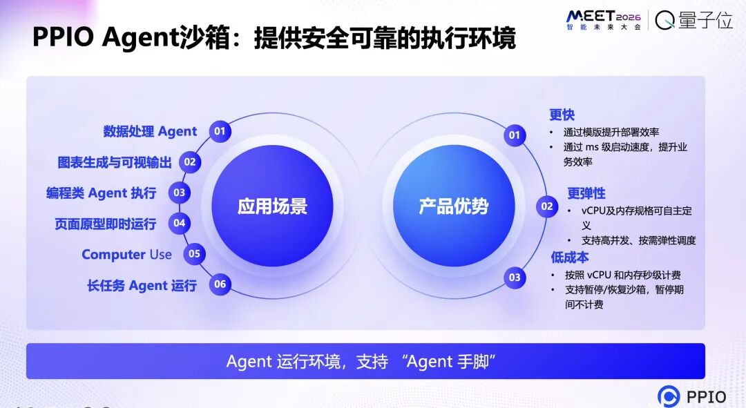 基于前期积累,我们在今年WAIC发布了首个兼容E2B的Agent沙箱,以Runtime为核心整合模型调用、短期/长期记忆和数据库能力,帮助头部Agent厂商规模化落地,通过更安全、敏捷的沙箱体系降低错误率。