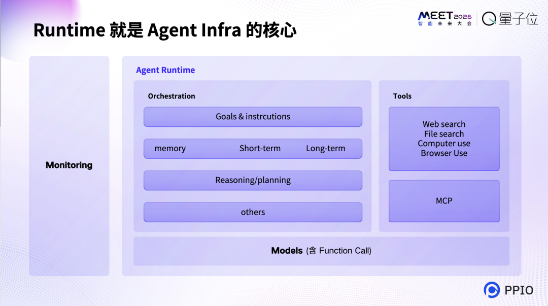 Runtime解决的是“能不能跑起来”的问题,真正的智能体能否在各种环境下大规模、通用地适配并稳定运行,依赖的正是把不同能力进行综合调度的Runtime,这也是Agent Infra的核心所在。