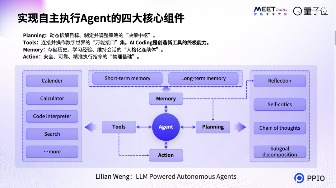 这篇文章里面揭示了真正的智能体有哪些核心的组件,包括四个核心的元素:Memory、Planning、Tools、Action。
