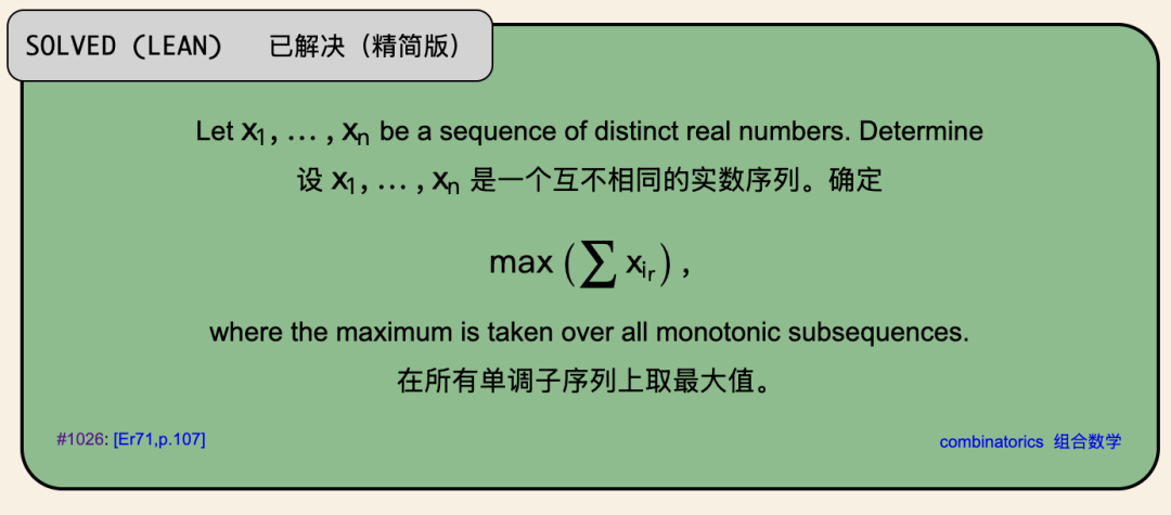 所以如果,...,是不同的正实数且,那么总存在一个和至少为1/k的单调子序列。
